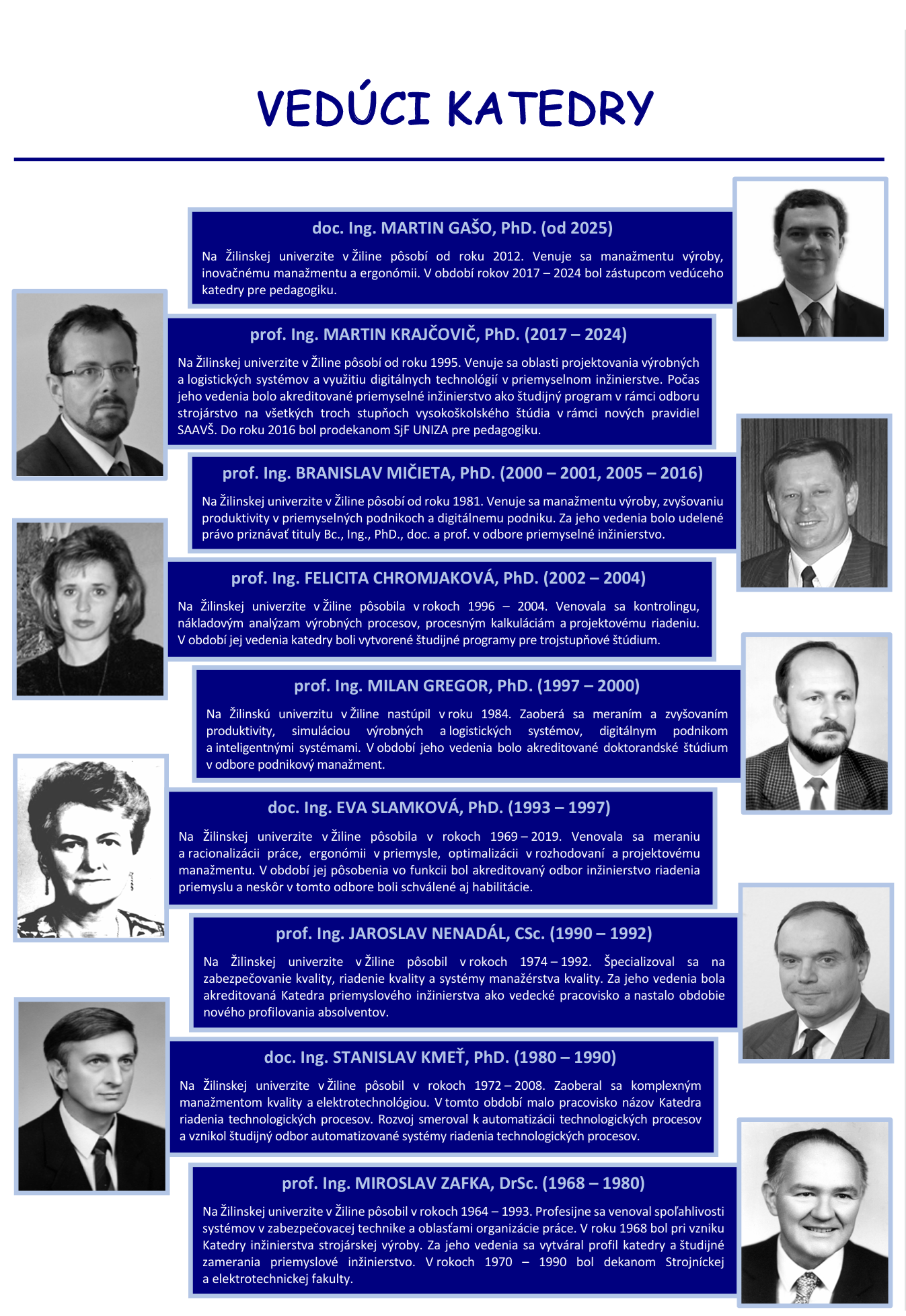 V roku 1969 bola založená na VŠDS v Žiline na fakulte strojníckej a elektrotechnickej katedra inžinierstva strojárskej výroby, ktorá sa v roku 1980 transformovala na katedru riadenia technologických procesov a 1.5.1990 na terajšiu katedru priemyselného inžinierstva. Sídli v areáli Žilinskej univerzity na Veľkom Diele v blokoch NB a NC.