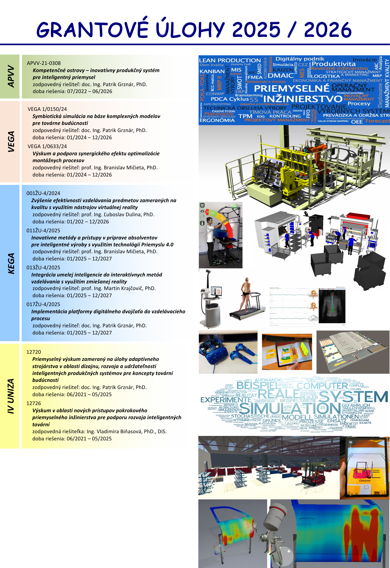 Riešené projekty Výskum a vývoj najvhodnejších podmienok na prevádzku ASIC serverov s cieľom poskytovania nových služieb spoločnosťou iLO, s.r.o. s prízvukom na ekonomickú a ekologickú prevádzku Zoznam projektov riešených na KPI od roku 2010 Projekt „APVV-16-0488 – Inovatívny systém pre testovanie logistických procesov s využitím simulácie a emulácie“ hodnotený ako výskumný projekt s vynikajúcou úrovňou (str. 74)